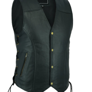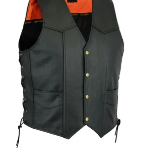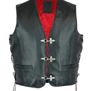 Leather Mens Fish Hook Buckle Biker Vest Sides Laces