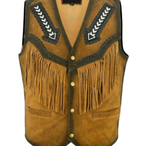 Men Tan Brown Suede Leather Western Cowboy Jacket With Fringe Native American