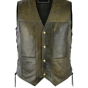 Mens Motorcycle 10 Pocket Distressed Brown Leather Vest Side Laces