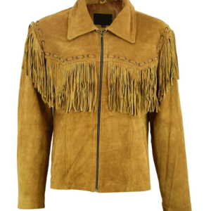 Mens New Native American Western Brown Suede Leather Jacket Fringe Tassels