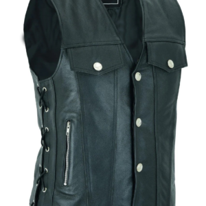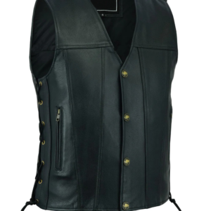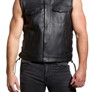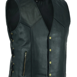Mens Real Leather Motorcycle Waistcoat Biker Vest With Side Laces Real Choice