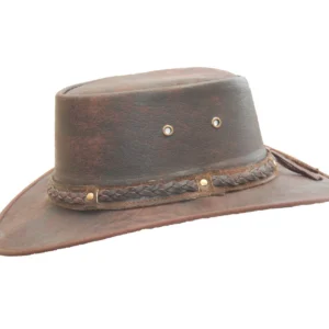 New Kids Real Distressed Leather Foldaway Australian Style Bush Hat Brown
