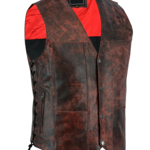 Mens Red Distressed Waistcoat Motorcycle Biker Style Gillette Vest-Top Quality