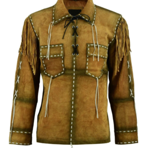 Mens Western Cowboy Brown Suede Leather Jacket With Fringe