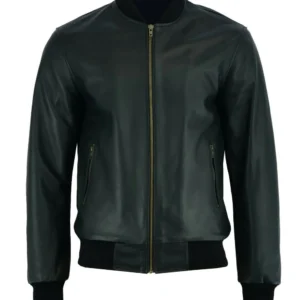 New 70’s retro bomber jacket men’s black classic soft leather jacket